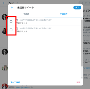 予約ツイートの左側にチェックボックスが表示されます。